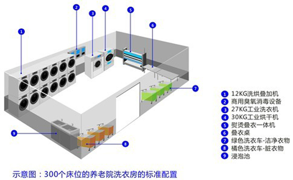 目前在我國很多(duō)養老院機構還是沒有能力配備自己的洗衣房,很多都是把衣物外包給外麵的洗滌公司洗滌、這些洗滌廠不僅沒有進行分類洗滌並且無法自(zì)動消毒,老人皮膚病、感染病等易互(hù)相傳染;很多洗(xǐ)滌廠(chǎng)為了節約(yuē)成本都是把從不同行業中收集回來的衣物統一洗滌,比如(rú)酒店(diàn)的床(chuáng)單被套布草也(yě)跟衣物一起(qǐ)混合洗滌。洗滌完了之後(hòu),衣物應該使(shǐ)用烘幹機烘幹,床單被套要使用燙平機熨燙烘(hōng)幹,所以為了讓養老院的老人們住的安全,穿的舒服健康,必須要(yào)給養老院配置自己的洗衣房。