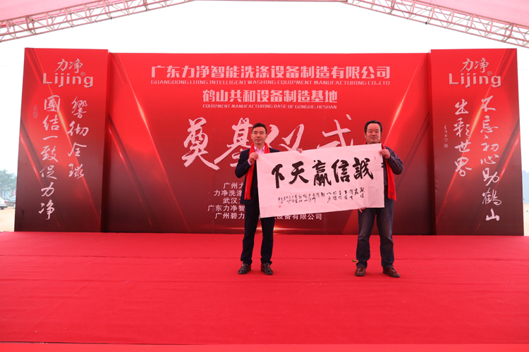 1月20日,位於鶴山工業城的廣東力(lì)淨智能洗滌設備有限公司設備製造基地擂響戰(zhàn)鼓,隆重舉行奠基儀式。
