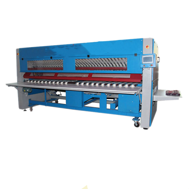多折方式:根據設(shè)定(dìng)的程序,采用夾子或機械裝置對床單進行(háng)多(duō)次折疊(dié),可以編程設置縱向和(hé)橫向的折疊次(cì)數,以適應不同幅度和厚度的織物。
